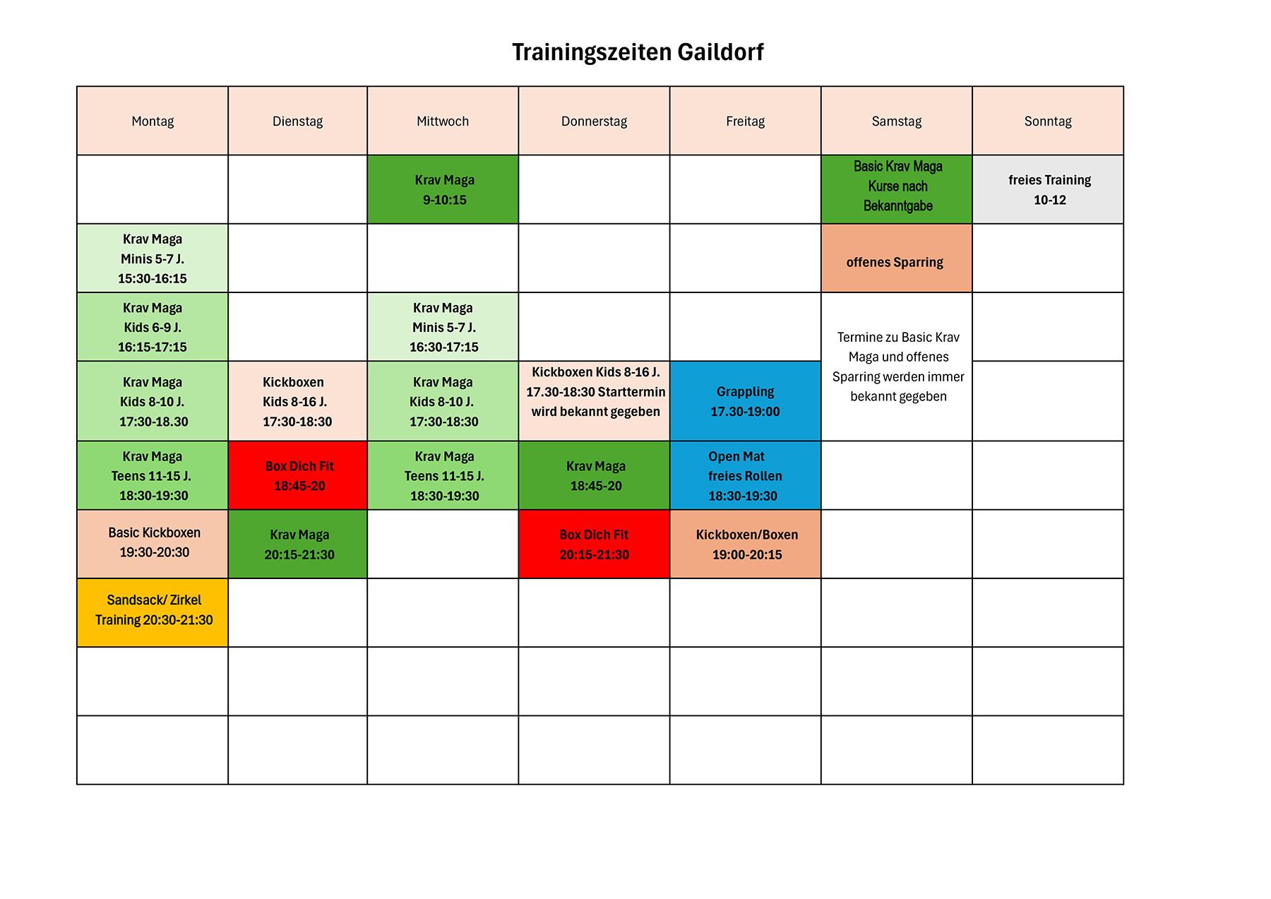 Kursplan für den Standort Gaildorf