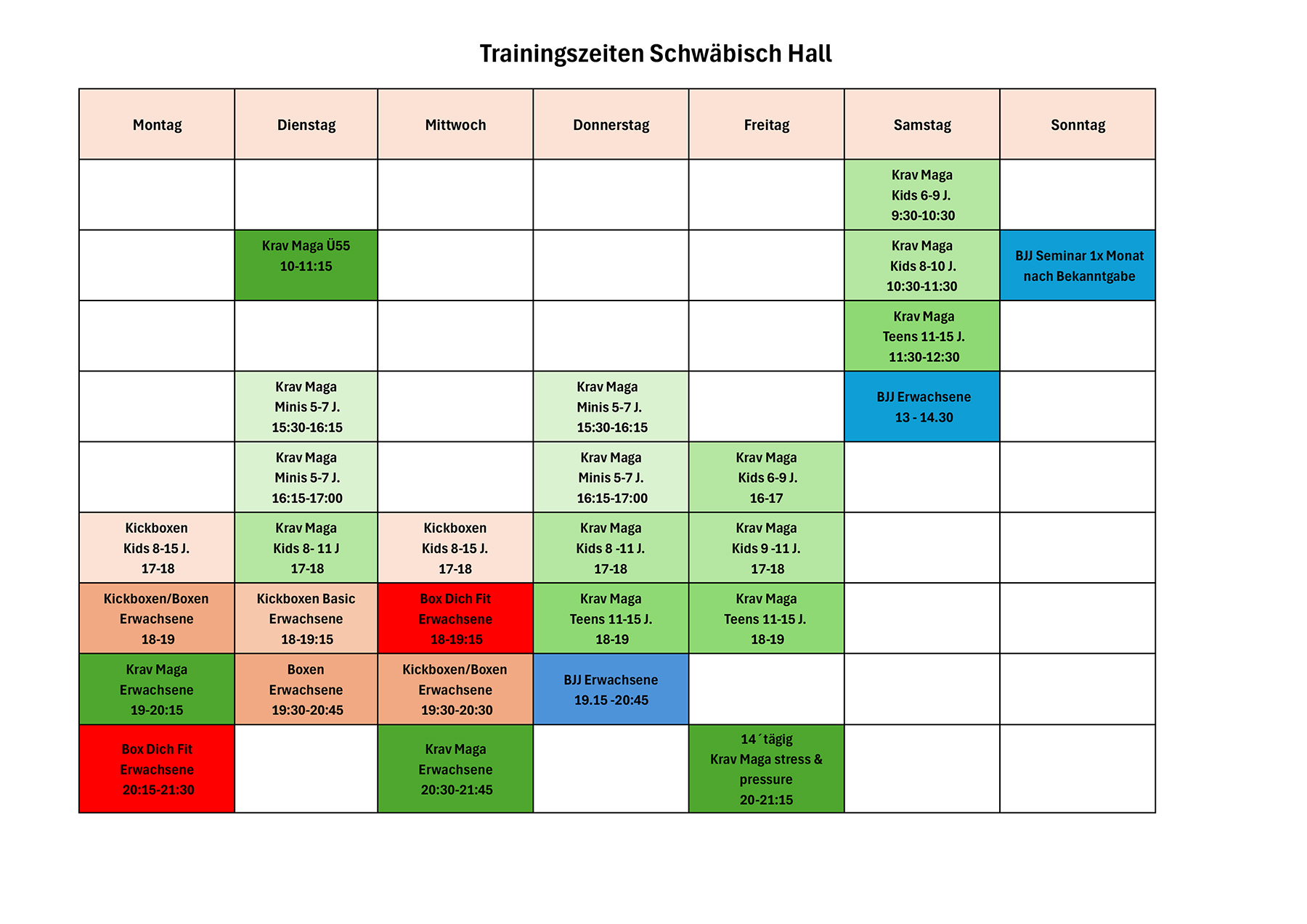 Kursplan für den Standort Schwäbisch Hall